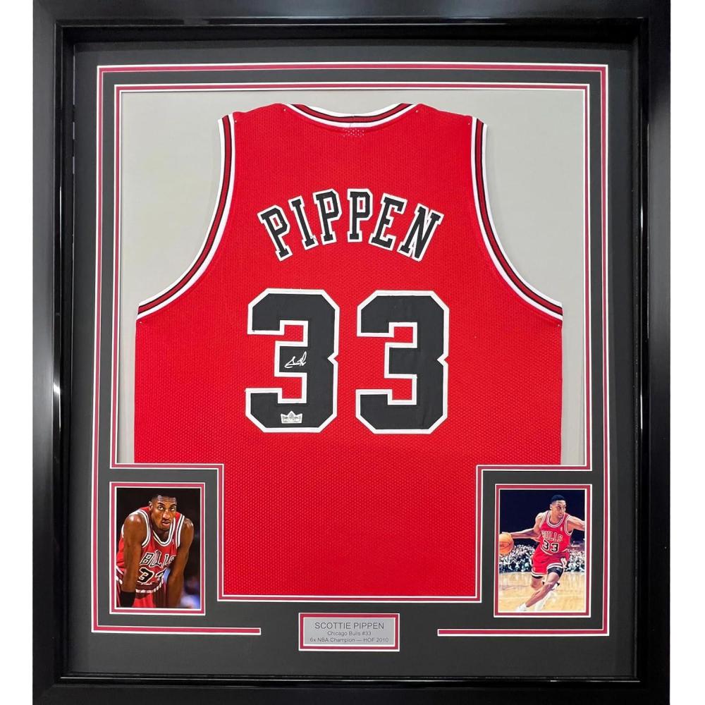 Framed Facsimile Autographed Scottie Pippen 35×39 Chicago Red Reprint Laser Auto Basketball Jersey