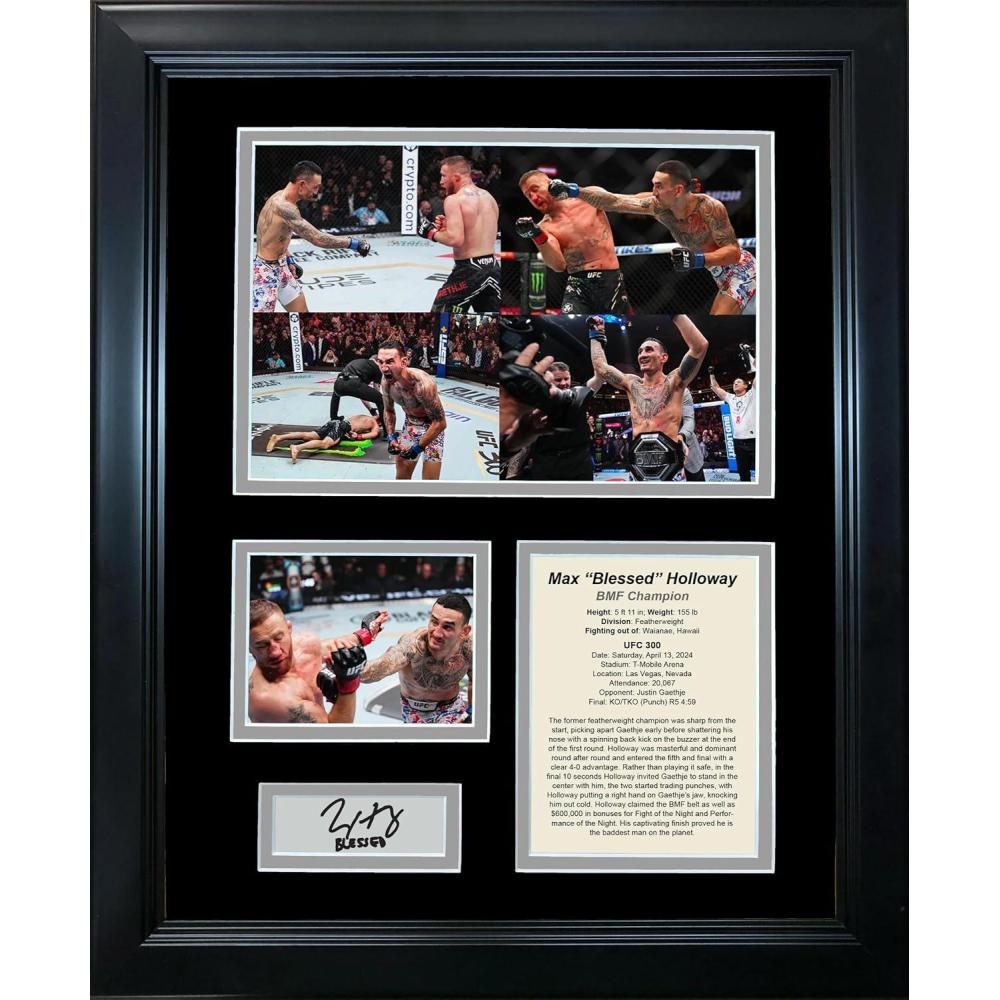 Framed Max Holloway BMF Championship vs Justin Gathje UFC 300 Facsimile Laser Engraved Signature Auto MMA 11″x14″ Photo Sig Collage