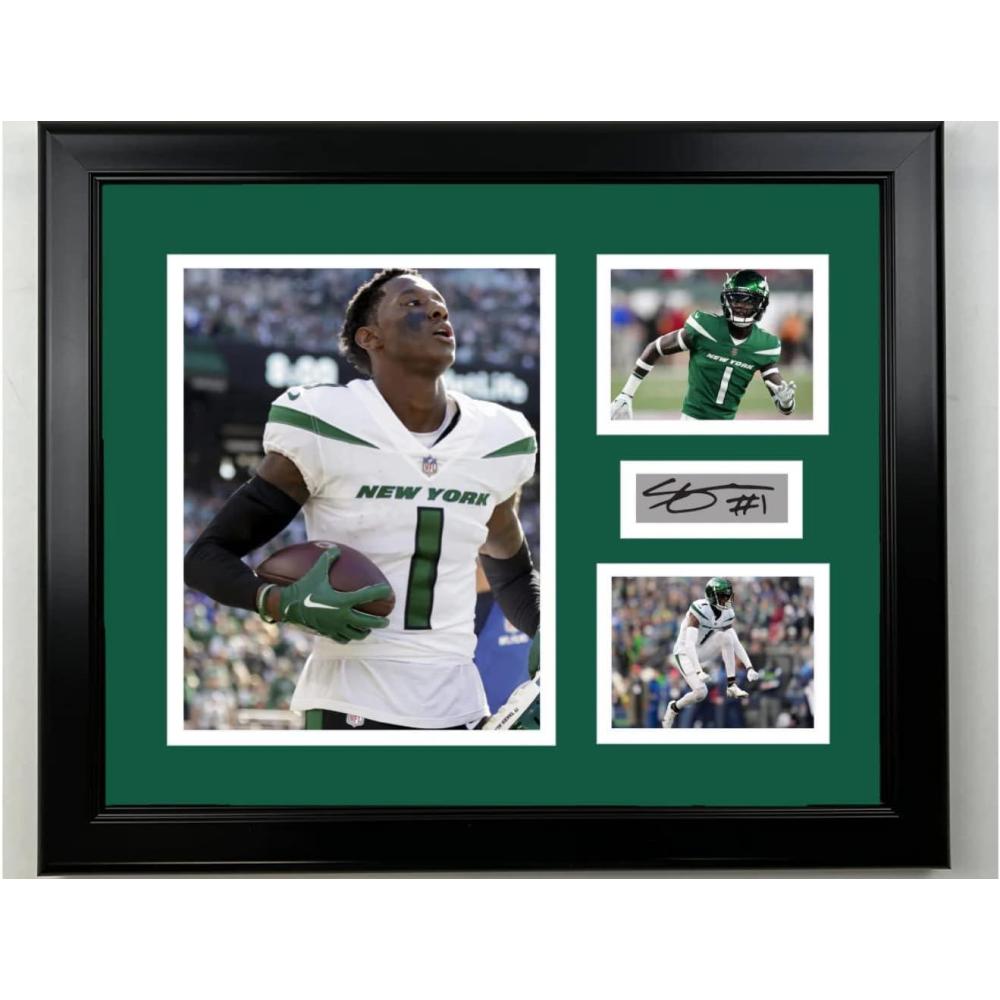 Framed Sauce Gardner New York Jets Facsimile Laser Engraved Signature Football 14×11 3 Photo Collage
