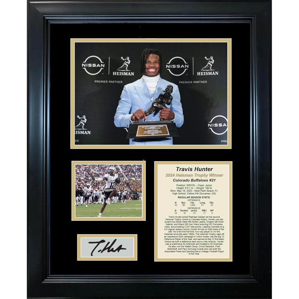 Framed Travis Hunter Colorado Buffaloes 2024 Heisman Trophy Winner Facsimile Laser Engraved Signature Auto 11″x14″ College Football Photo Sig Collage