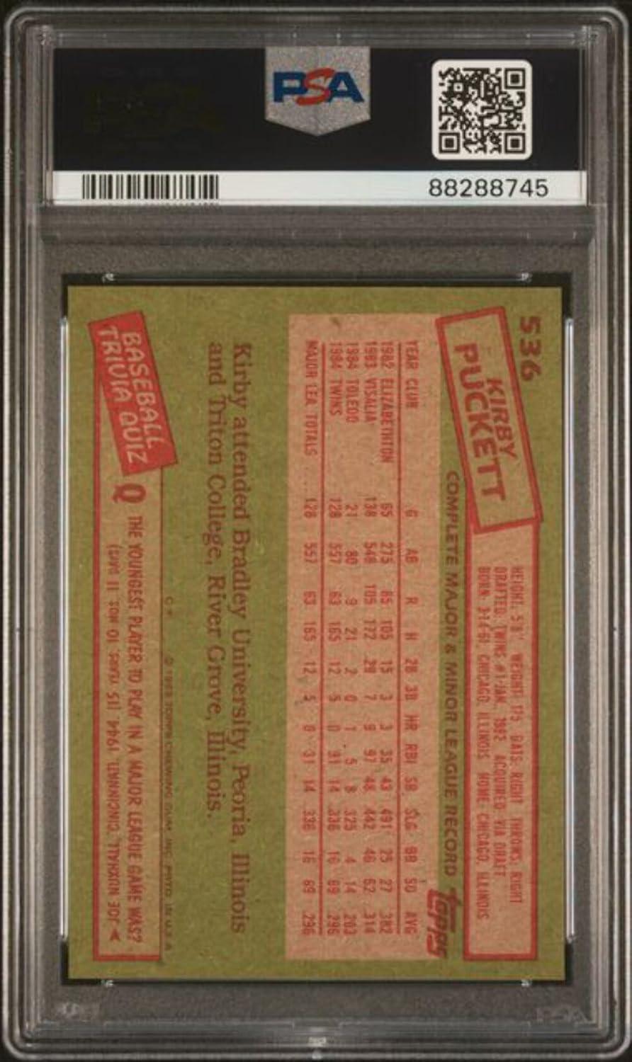 Graded 1985 Topps Kirby Puckett #536 Rookie RC Baseball Card PSA 9 Mint