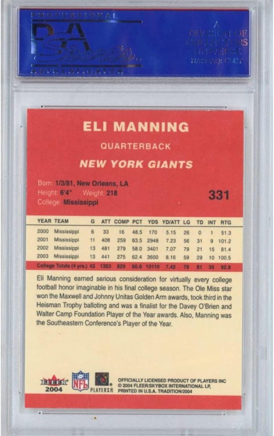 Graded 2004 Fleer Tradition Eli Manning #331 Rookie RC Football Card PSA 10 Gem Mint