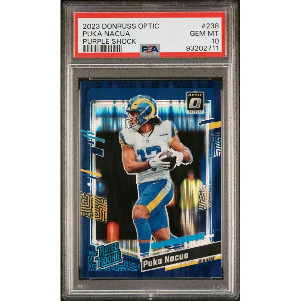 Graded 2023 Panini Donruss Optic Puka Nacua #238 Purple Shock Rookie RC Football Card PSA 10 Gem Mint