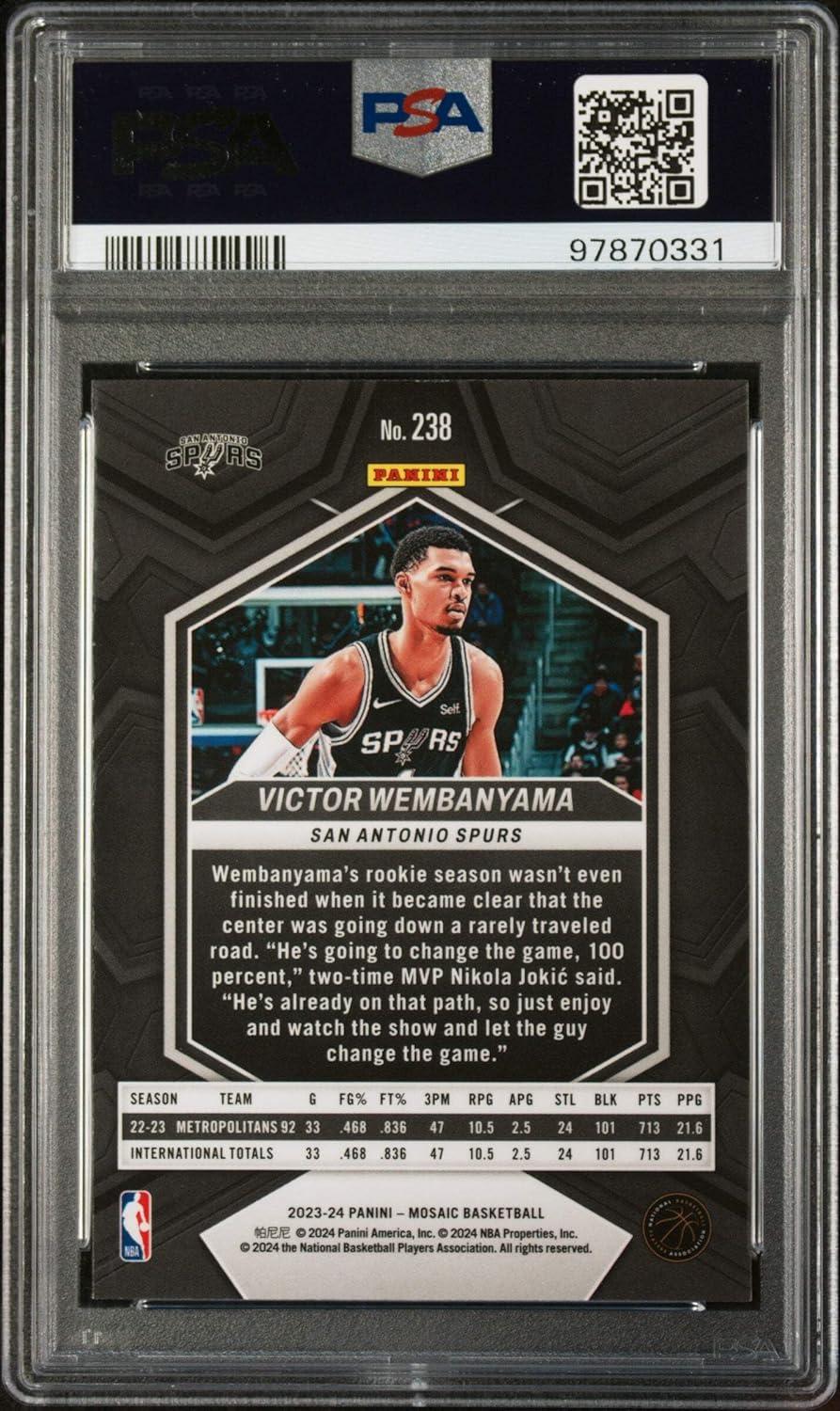 Graded 2023 Panini Mosaic Victor Wembanyama #238 Rookie RC Basketball Card PSA 10 Gem Mint
