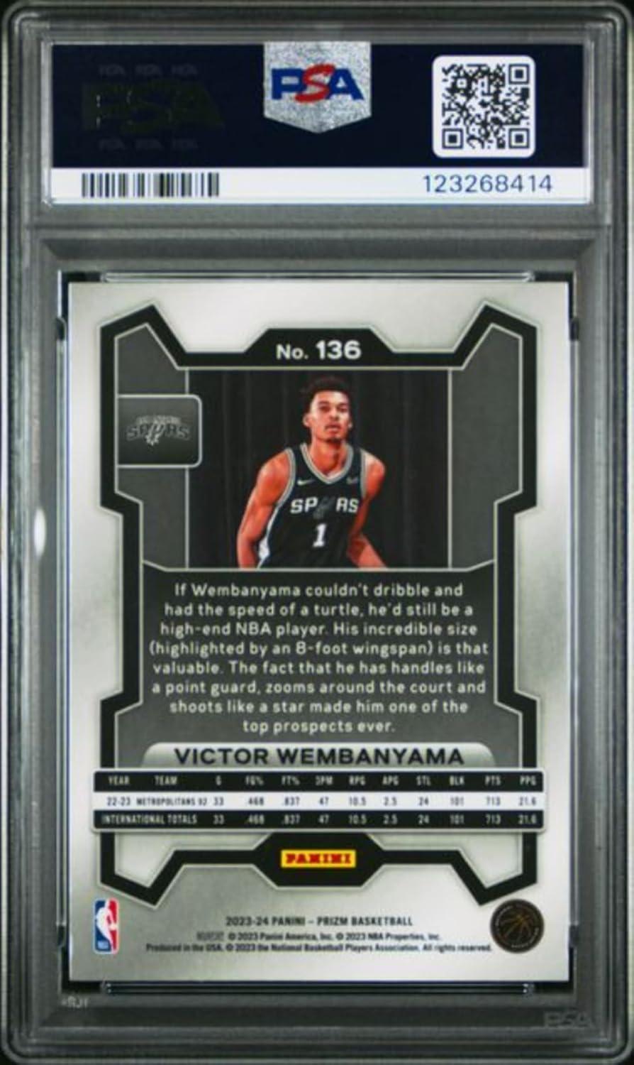 Graded 2023 Panini Prizm Victor Wembanyama #136 Rookie RC Basketball Card PSA 10 Gem Mint