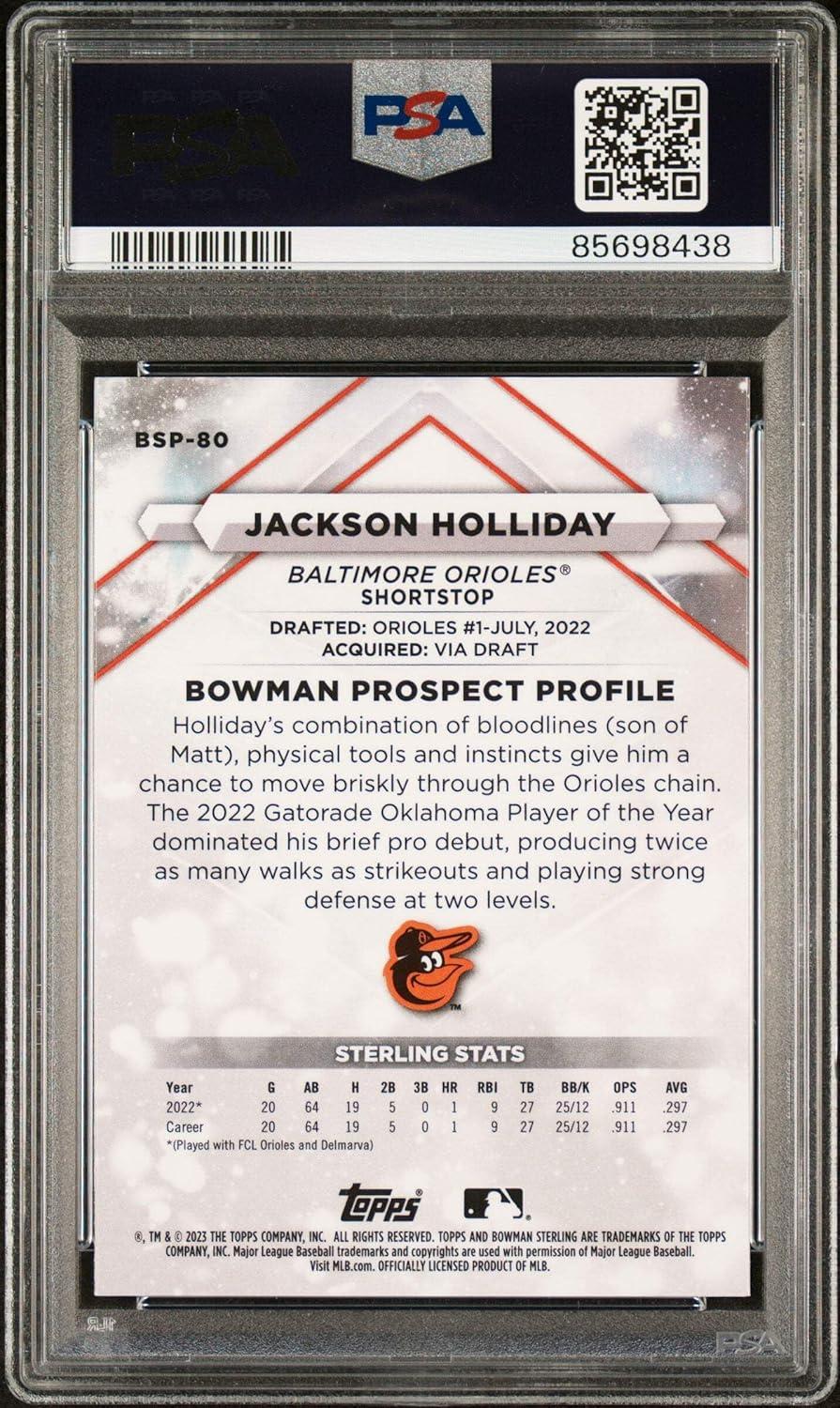 Graded 2023 Topps Bowman Sterling Jackson Holliday #BSP80 Rookie RC Baseball Card PSA 10 Gem Mint