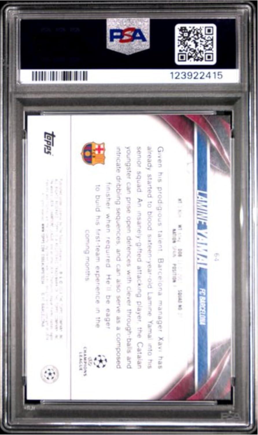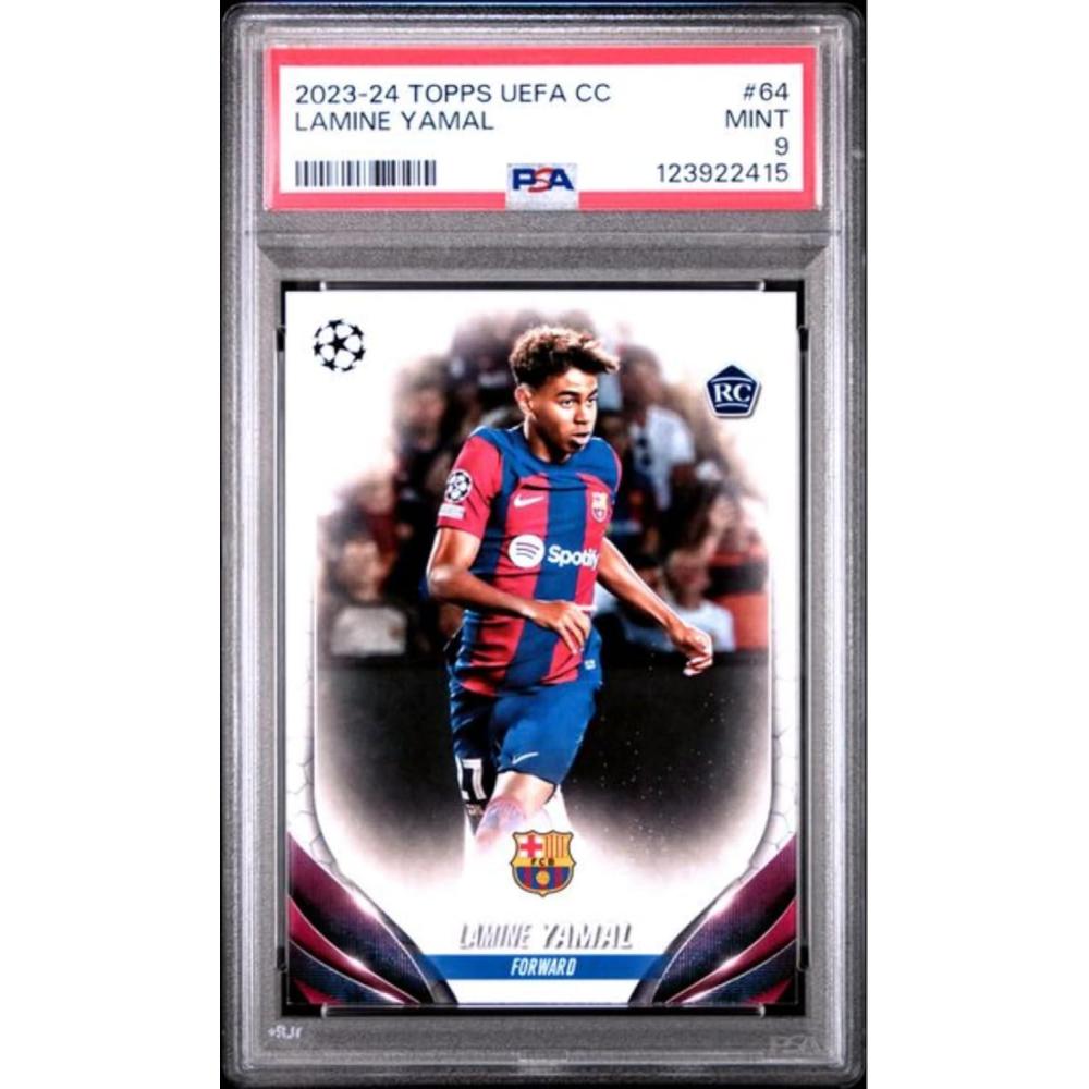 Graded 2023 Topps UEFA CC Lamine Yamal #64 Rookie RC Soccer Card PSA 9 Mint
