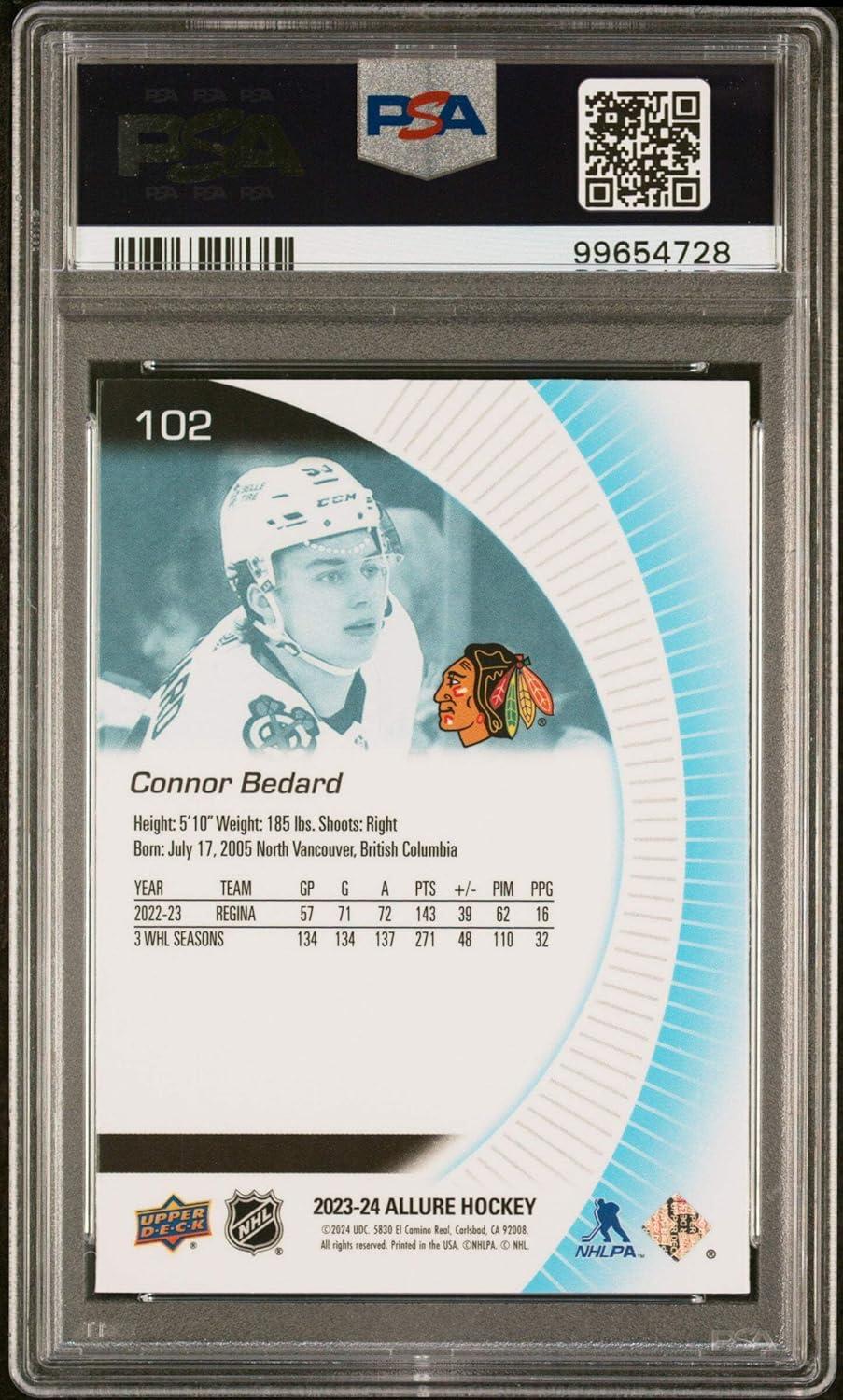Graded 2023 Upper Deck Allure Connor Bedard #102 Rookie RC Hockey Card PSA 10 Gem Mint
