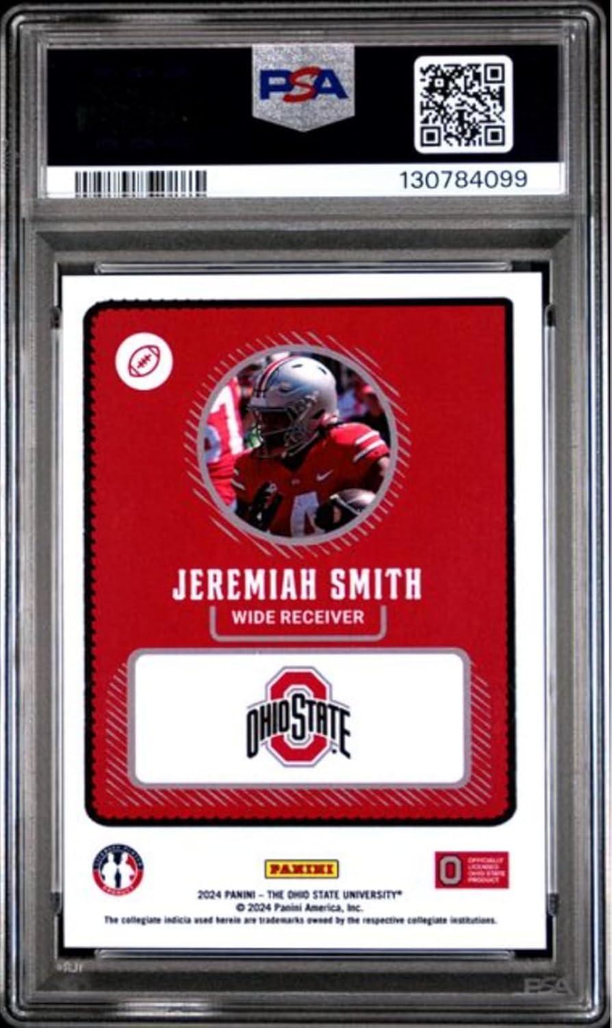 Graded 2024 Panini NIL Jeremiah Smith The Ohio State University Rookie RC Football Card PSA 10 Gem Mint
