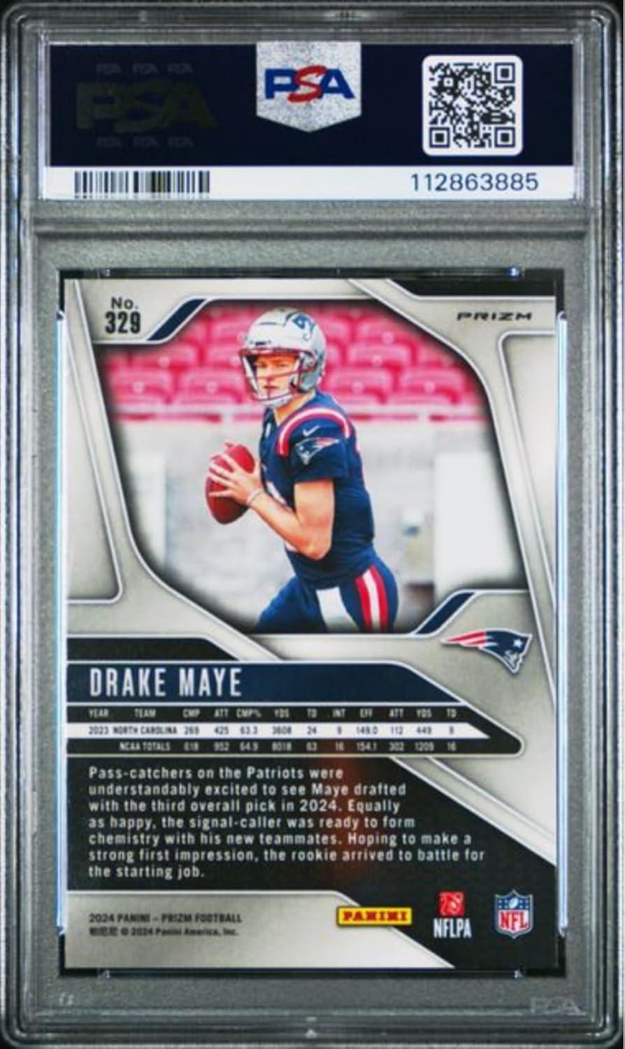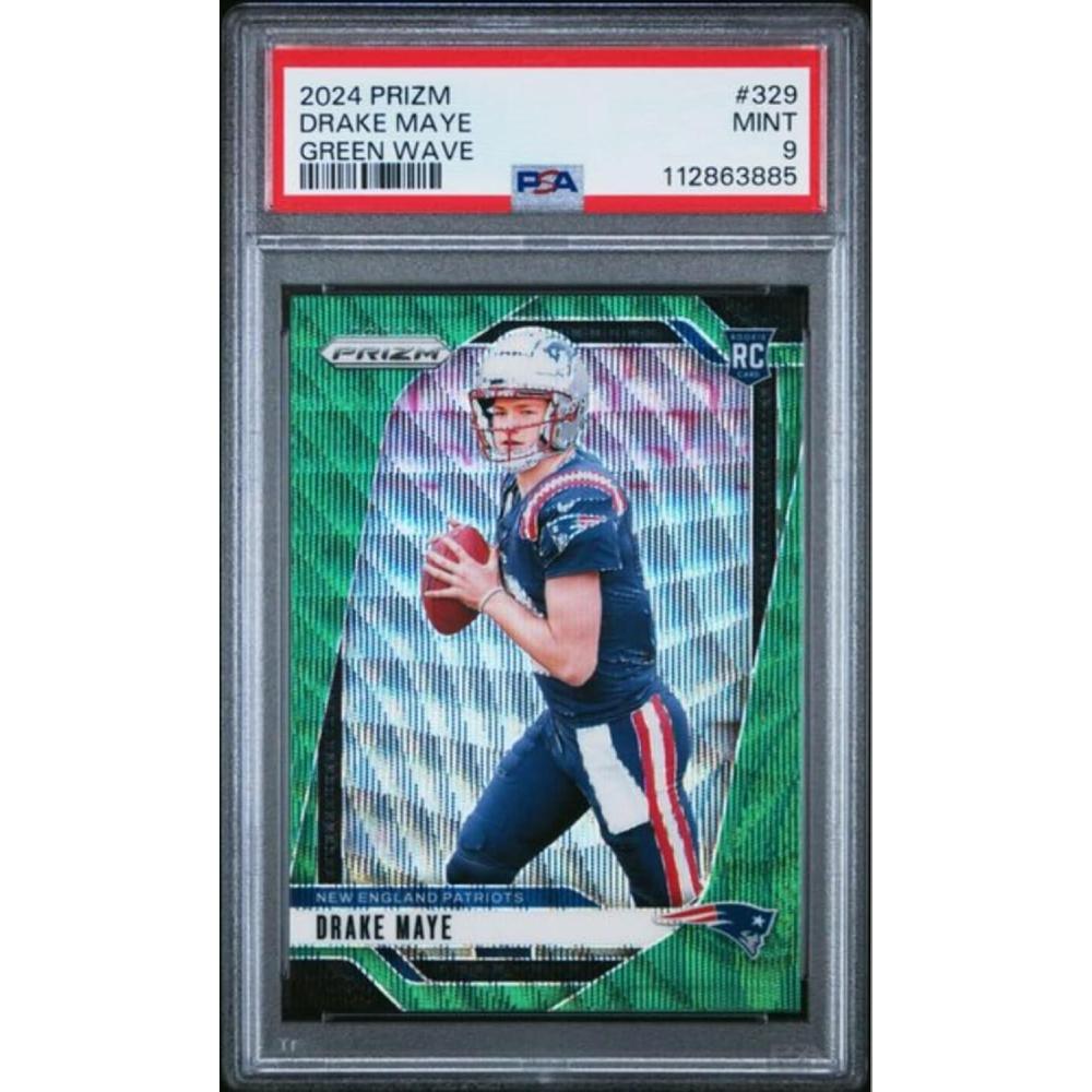Graded 2024 Panini Prizm Drake Maye #329 Green Wave Rookie RC Football Card PSA 9 Mint