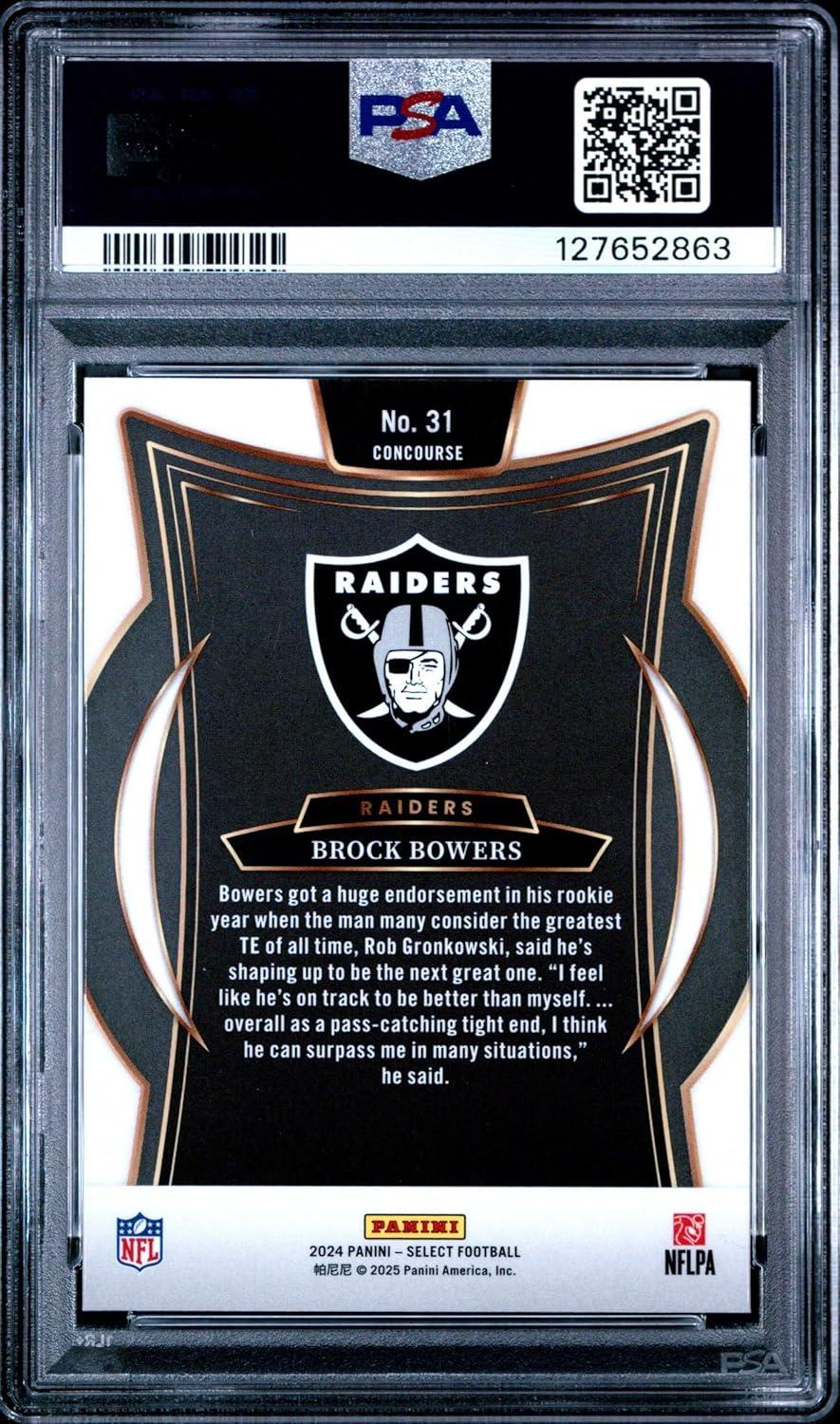 imageGraded 2024 Panini Select Brock Bowers 31 Rookie RC Football Card PSA 9 Mint