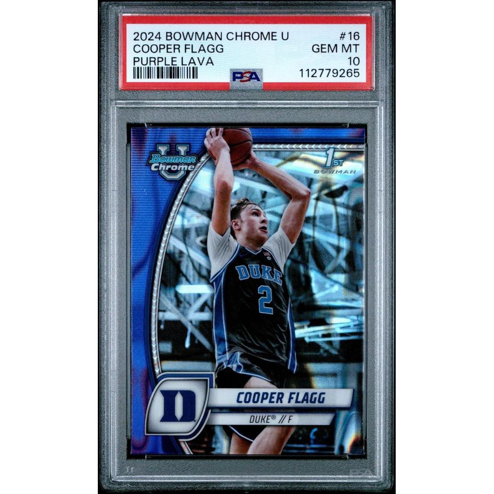 Graded 2024 Topps Bowman Chrome U Cooper Flagg #16 Purple Lava Rookie RC Basketball Card PSA 10 Gem Mint