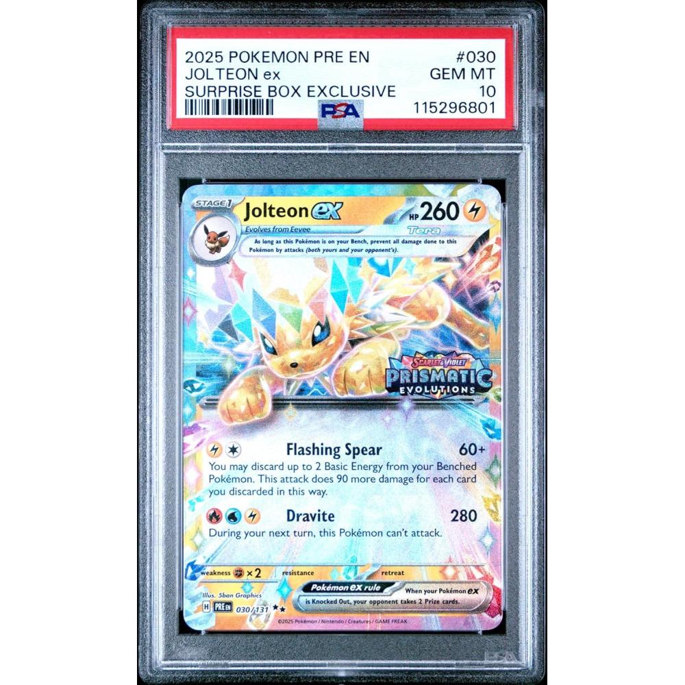 Graded 2025 PKM PRE EN Jolteon ex #030 SBE Prismatic Evolutions Trading Card Game PSA 10 Gem Mint