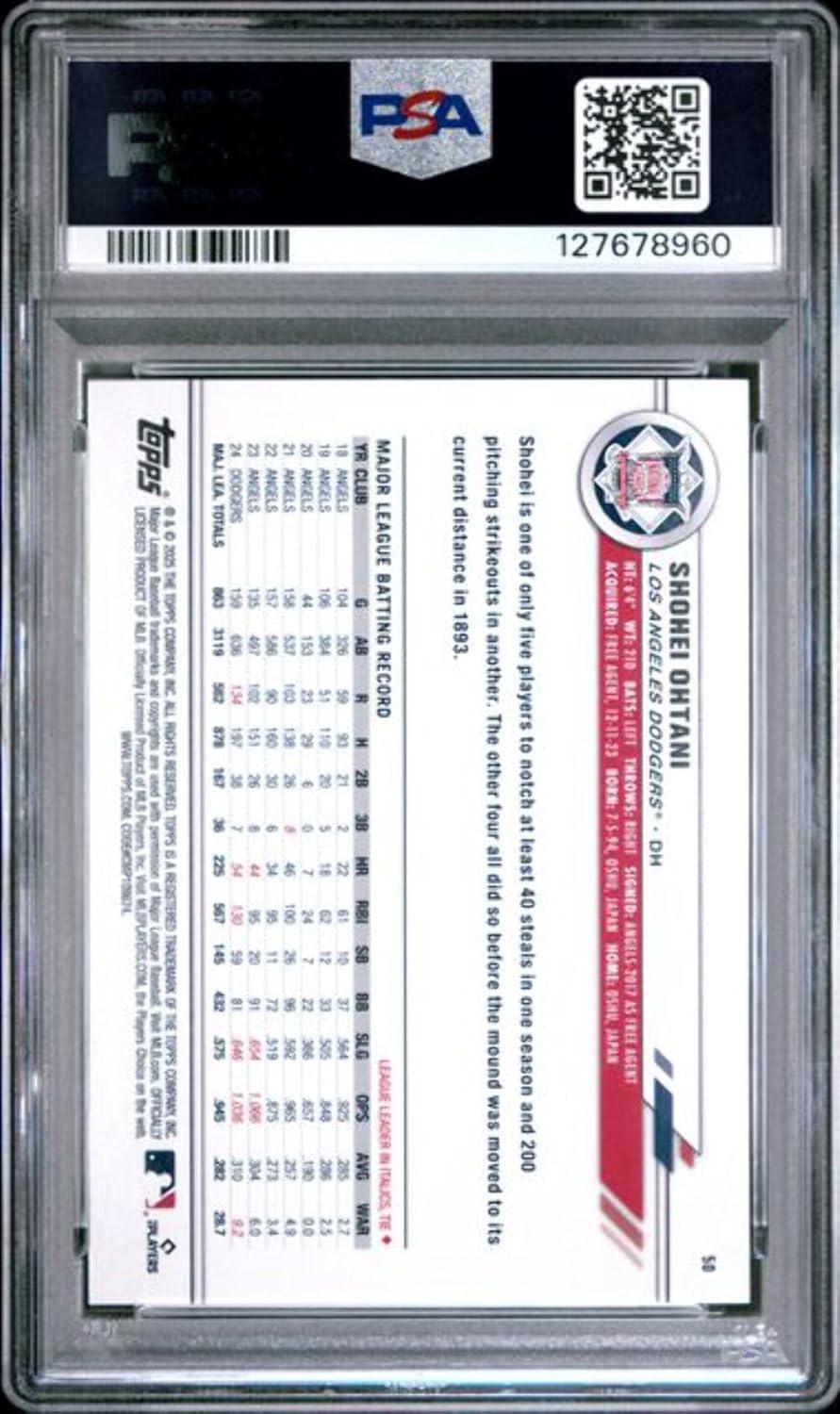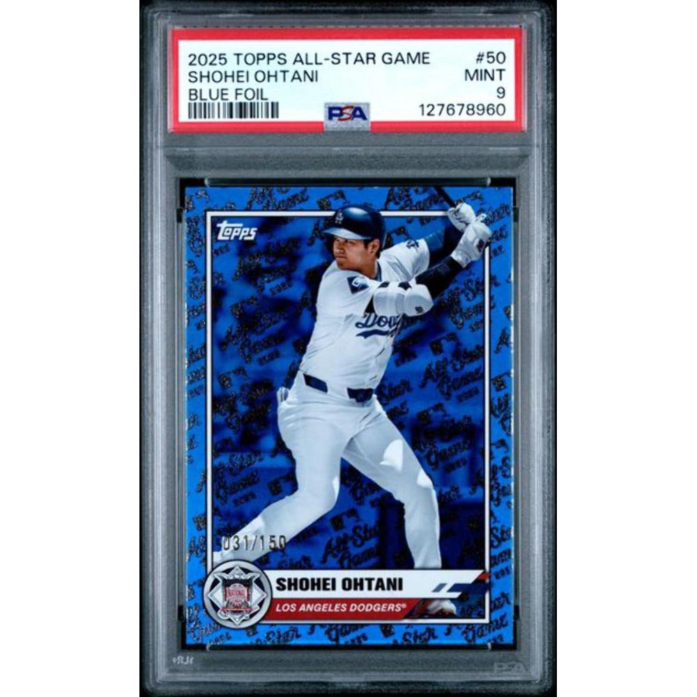 Graded 2025 Topps All Star Game Shohei Ohtani #50/150 Blue Foil Baseball Card PSA 9 Mint