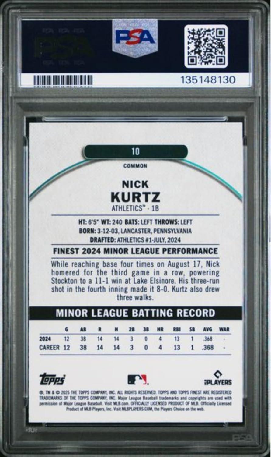 Graded 2025 Topps Finest Nick Kurtz #10 Rookie RC Baseball Card PSA 10 Gem Mint