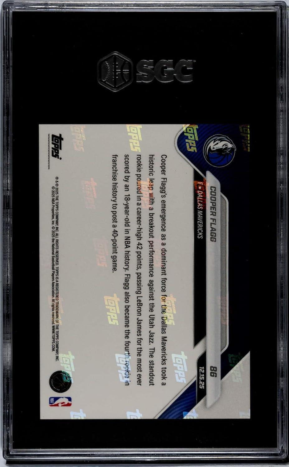 Graded 2025 Topps Now Cooper Flagg #86 Rookie RC Basketball Card SGC 10 Gem Mint