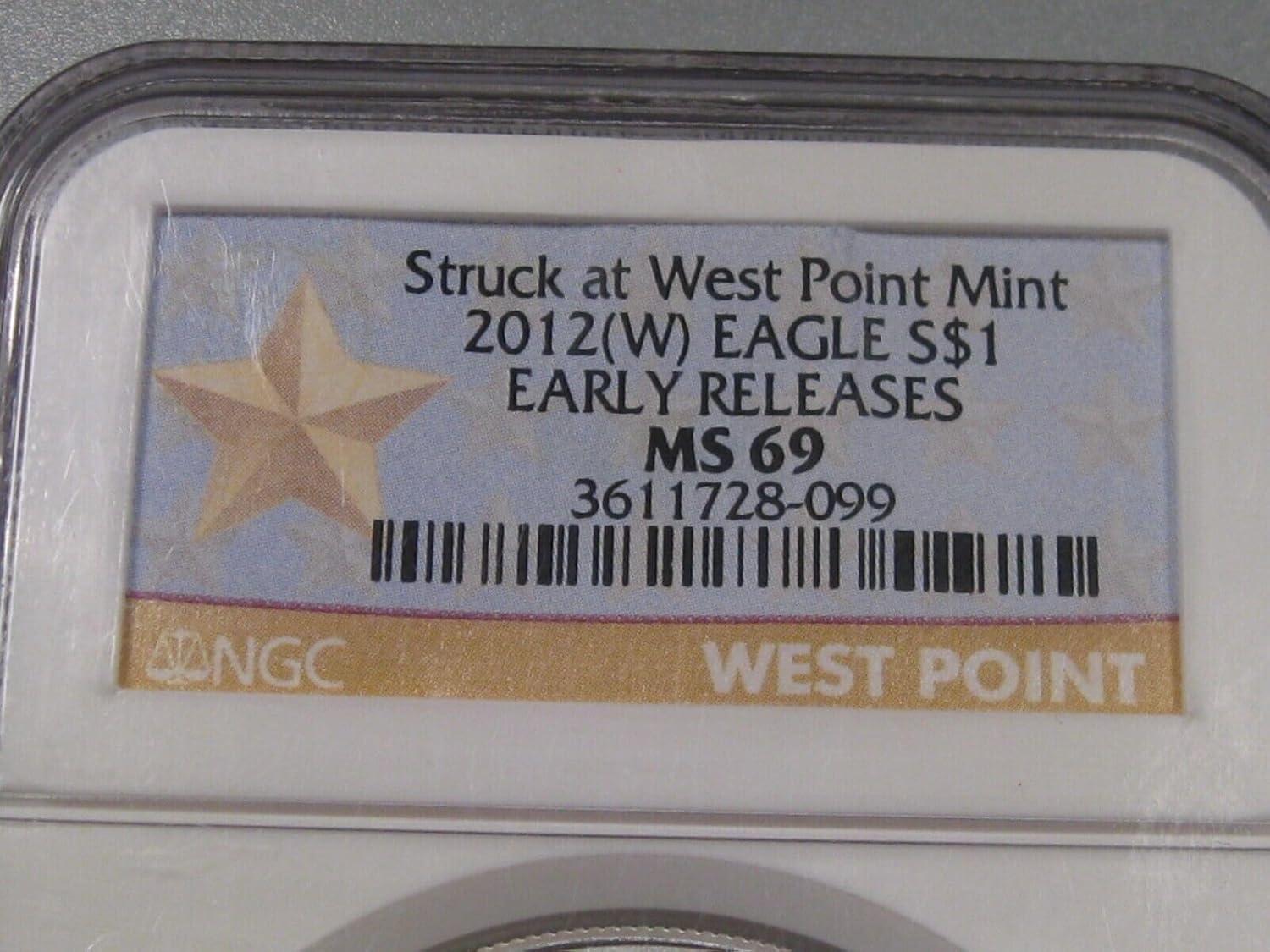 Hall of Fame Sports Memorabilia – 2012 W American Silver Eagle – Burnished – Bright White – A Near Perfect Grade – Early Release – Professionally Graded – NGC MS69