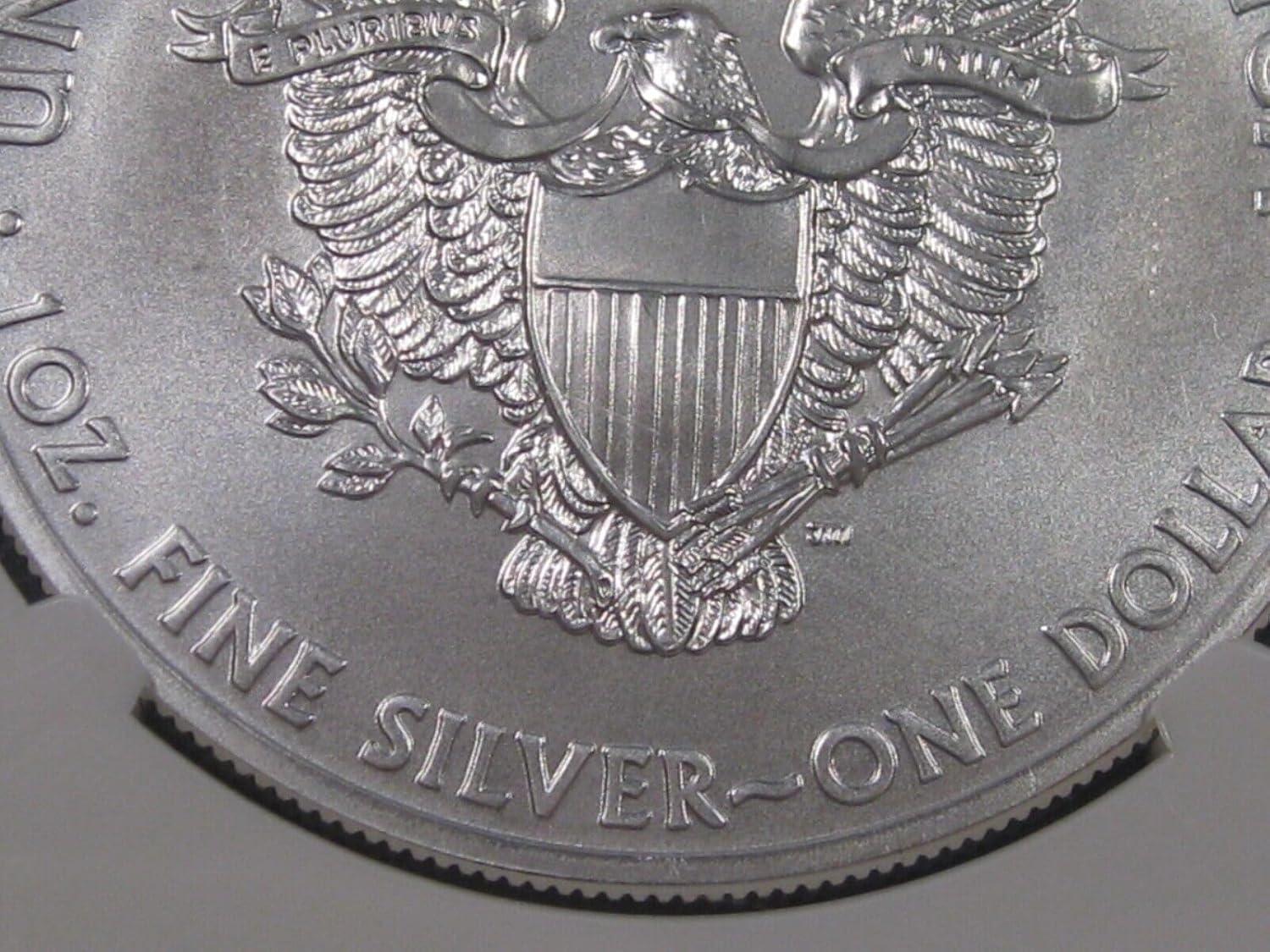 Bright White Brilliance: Revel in the radiant, bright white finish of this Silver Eagle, free from any blemishes or milky features, presenting a flawless appearance.