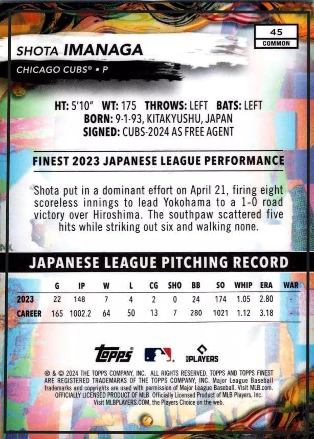 Hall of Fame Sports Memorabilia 2024 Topps Finest Shota Imanaga #45 Chicago Cubs Rookie RC Baseball Card