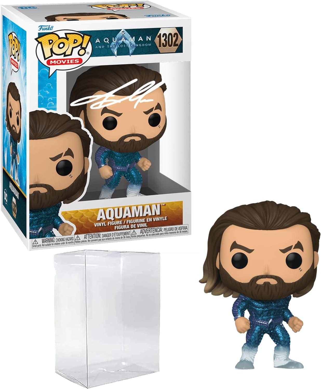 Jason Momoa Aquaman #1302 Facsimile Signed Reprint Laser Autographed Funko POP! Movies Aquaman and the Lost Kingdom Figurine with Protector Case