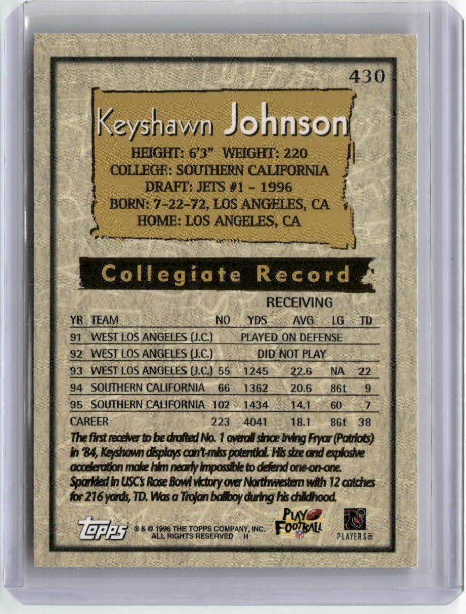 Vintage 1996 Topps Keyshawn Johnson #430 Rookie RC Football Card