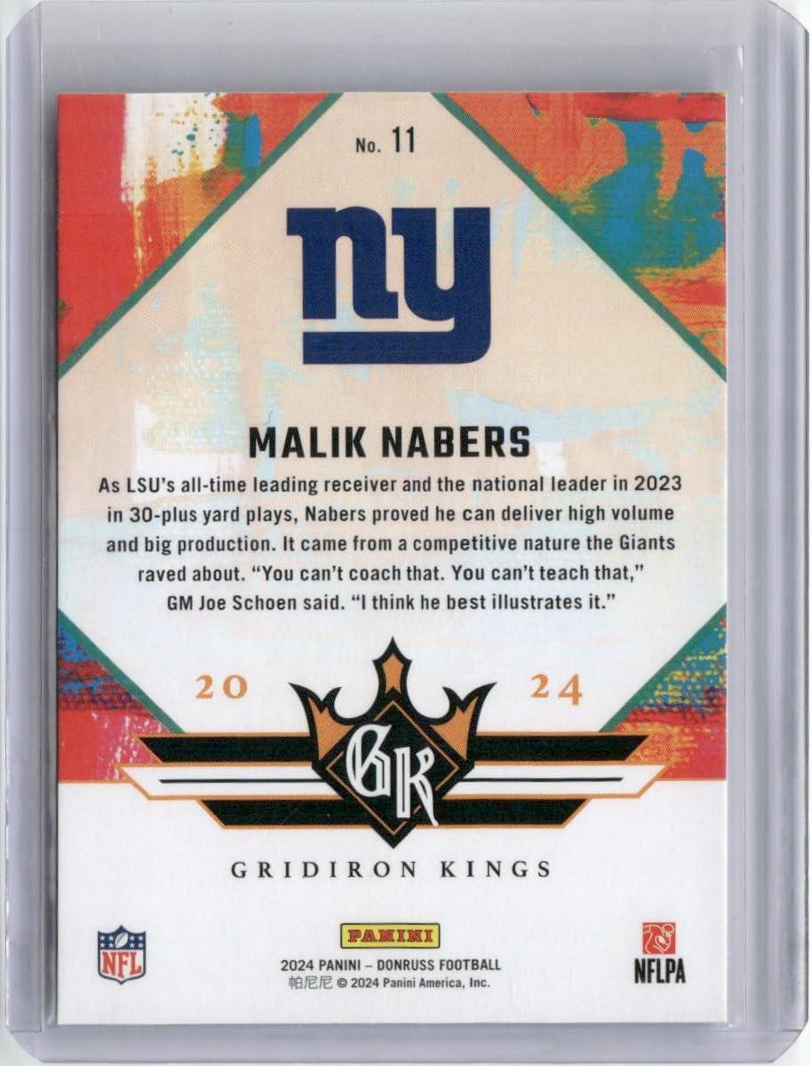 imageVintage 2024 Panini Donruss Gridiron Kings Malik Nabers 11 Rookie RC Football Card