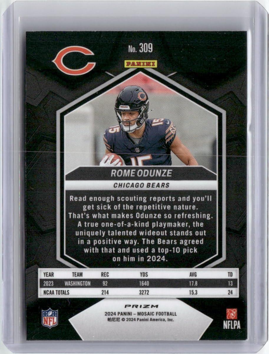 Vintage 2024 Panini Mosaic Reactive Blue Rome Odunze #309 Rookie RC Football Card